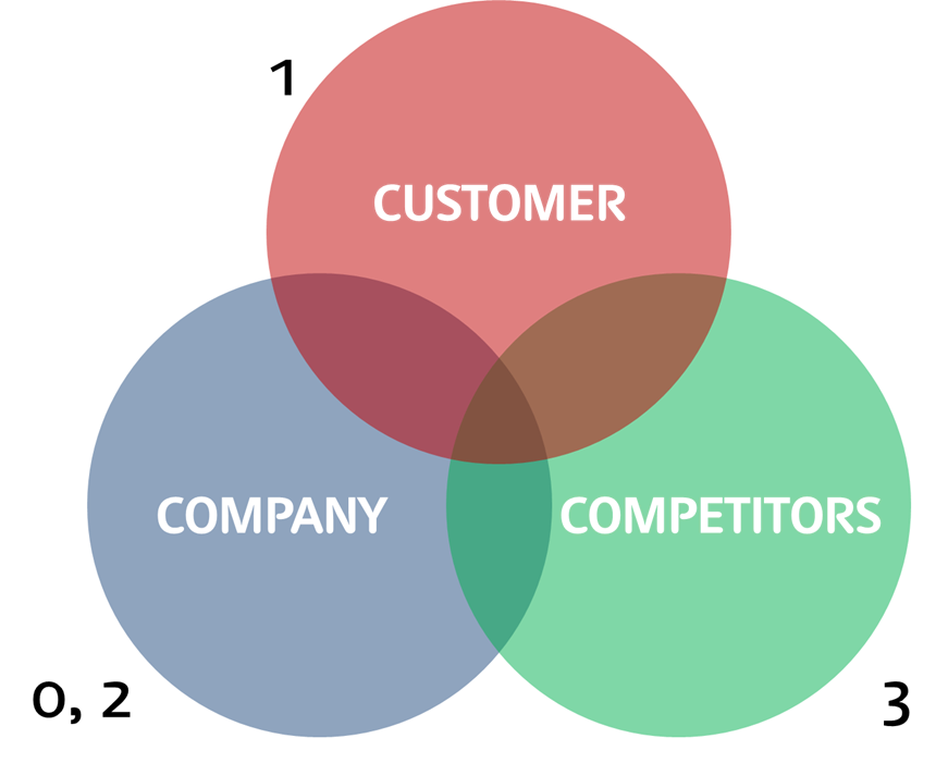 후광효과가 없는 중소기의 경우에는 company 측면에서 먼저 시작해야 하는 이유로 가치 추종자 (Me-too)로서는 생존 못하기 때문이며 따라서 가치의 주창자가 되기 위해 자기(company) 관점의 선택과 집중에서 시작할 필요가 있다.