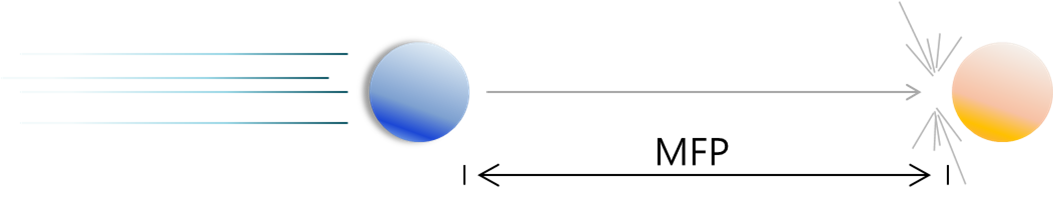 진공챔버 내의 압력이 낮으면 낮을수록 기체 입자들간의 거리가 멀어지게 됩니다. 이렇게 되면 입자들간의 충돌 빈도가 줄어들게 되죠. 하나의 입자가 다른 입자랑 충돌 없이 이동할 수 있는 거리를 평균자유 행정거리(Mean Free Path: MFP)라고 합니다.